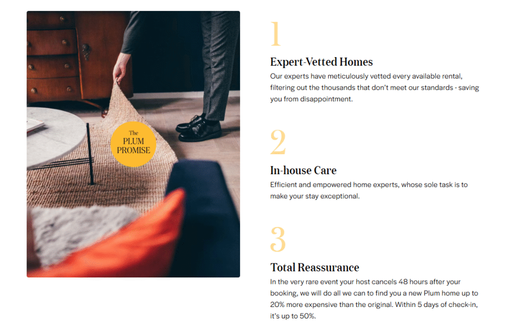 Plum Guide is a vacation rental platform that takes a different approach from Airbnb or Booking.com. Instead of listing thousands of properties from every corner of the globe, they hand-pick the best ones. Every property is rigorously vetted based on 150+ criteria. They even send someone to inspect the homes in person to make sure everything meets their standards.
